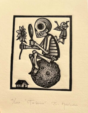 E. Robledo is a contemporary Mexican artist and printmaker known for his unique and vibrant works that reflect the rich cultural heritage of Mexico. His art is a beautiful fusion of traditional and modern elements, and his iconic pieces depict
